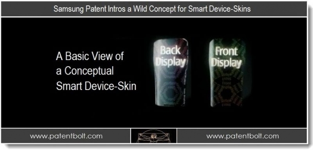 The U.S. Patent & Trademark Office recently published details surrounding a Samsung patent describing a new technology that will allow users to take an image and electronically wrap it around their devices, PatentBolt reported on Friday. The invention uses a “smart device-skin” or “film layer” that is integrated into the device. At any given time, a user will be able to change the appearance of a handset using the proposed chameleon-like technology. The South Korea-based vendor believes this new smart device-skin technology could become the next big thing and is even considering a retail version to be sold as an accessory for older Samsung smartphones.